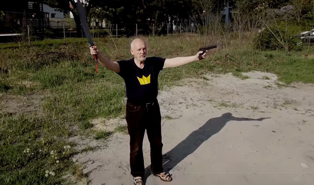 Janusz Korwin-Mikke rapuje z pistoletem i maczetą. Korwin-Mikke postawił na charakterystyczną dla siebie stylizację. Korwin rapuje i nominuje.